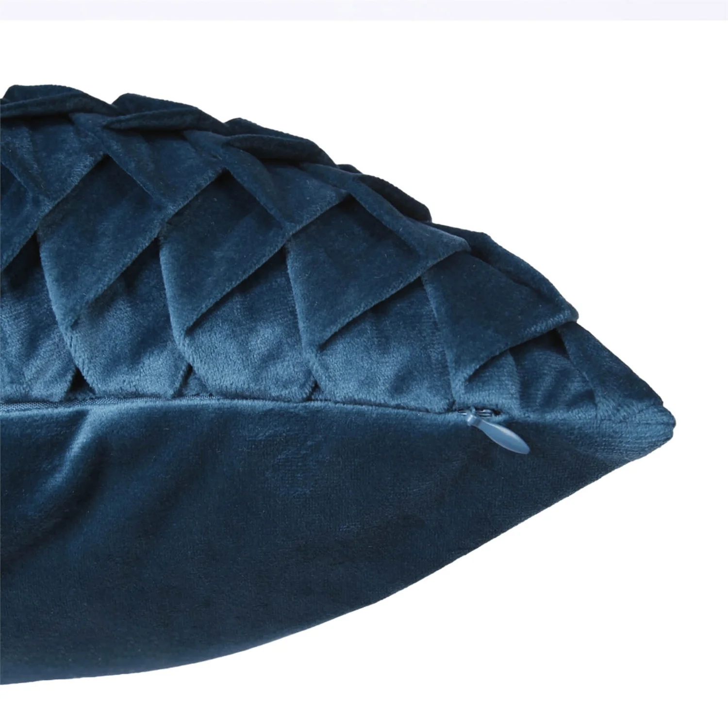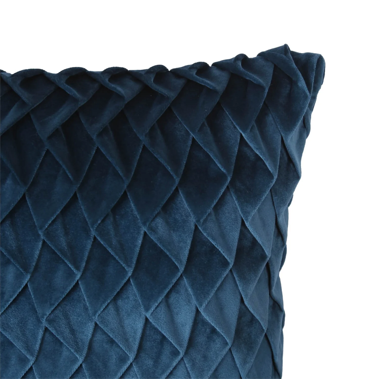 Geometric pintucked design in teal coloured plush velvet, with a plain plush velvet reverse.